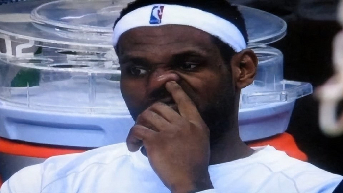 作为这个时代的NBA门面,詹姆斯时时刻刻都很在意自己的形象。不过在万千聚光灯下,詹姆斯也难免有出糗的时候。在一次比赛中,詹姆斯不知道是不是在场边坐太久有些无聊了,竟然抠起鼻屎来。